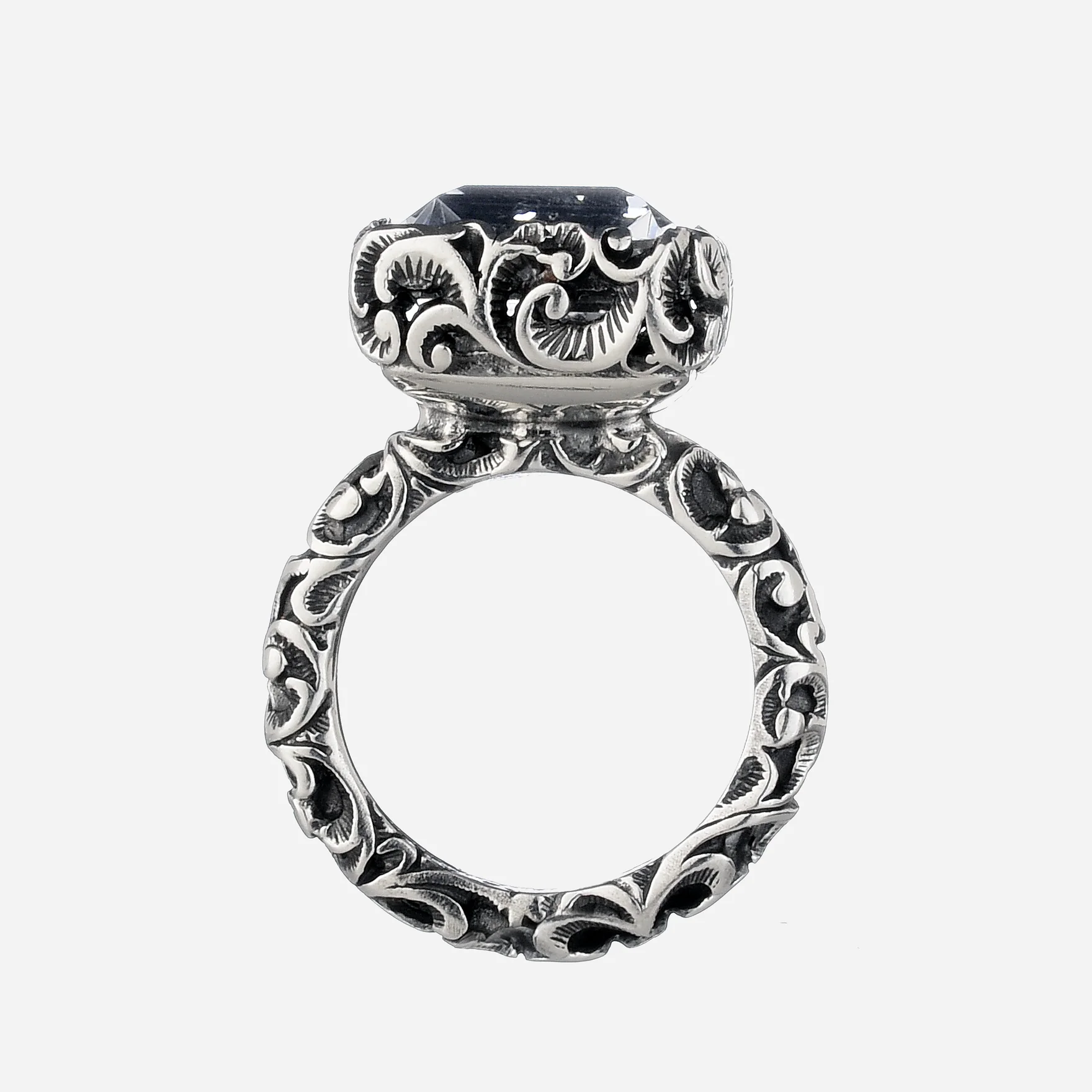 Questo anello dallo stile contemporaneo è realizzato in argento brunito, intagliato a mano da maestri artigiani che lo lavorano con l’antica tecnica del bulino. Presenta una pietra Citrino rettangolare taglio smeraldo che dona al gioiello una luce unica. La collezione di gioielli Maria e Luisa Jewels è realizzata con materie prime ipoallergeniche e senza l’utilizzo di nichel.